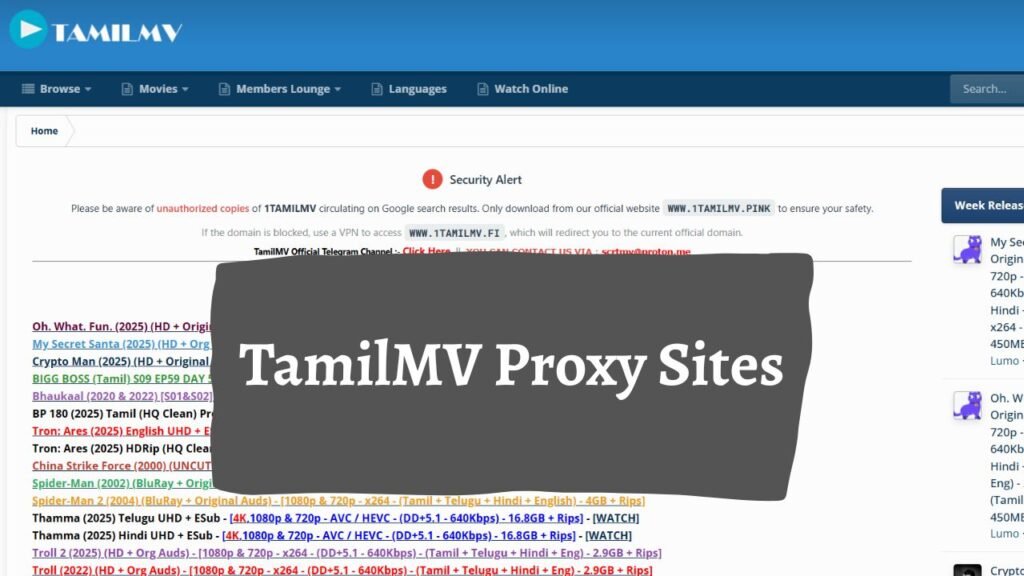 That’s where proxy and mirror sites come into play. These alternate links help users reach TamilMV even when the original website goes offline. To make things easier, we’ve put together a complete and updated list of active 1TamilMV proxy sites, verified mirror links, and similar free alternatives so you can keep streaming without interruptions.